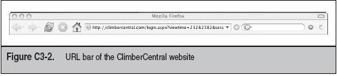 The e-mail was actually from the ClimberCentral domain. Siamak clicked the Log In link and watched his browser's URL address bar (Figure C3-2).